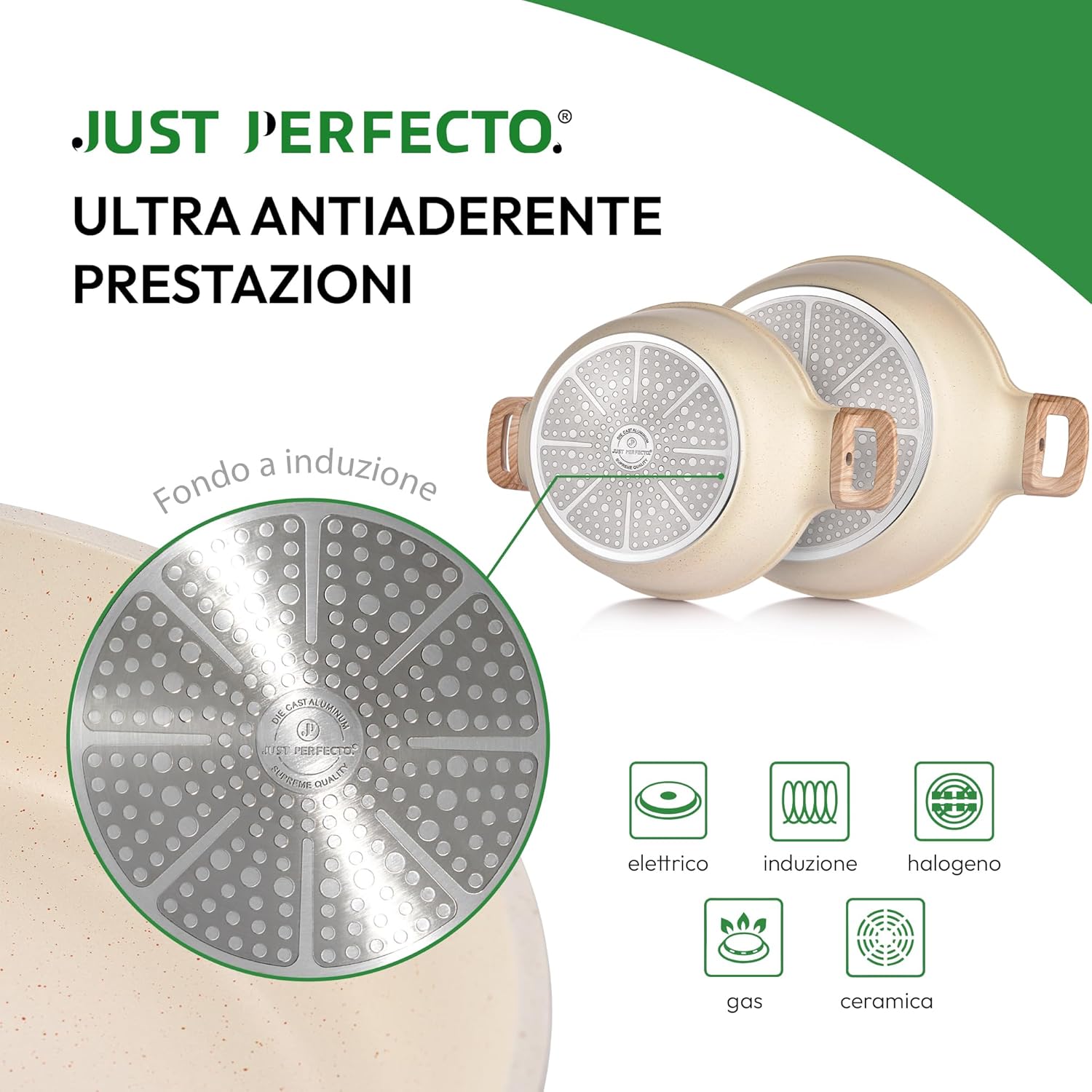 I nostri set di pentole e padelle Just Perfecto non solo sono versatili e resistenti, ma sono anche privi di PFOA e PFOS. Grazie alla nostra tecnologia avanzata Granite e alle performance ultra-antiaderenti, vi offriamo una cucina sicura e salutare. Scegliete il meglio per la vostra cucina, senza compromessi sulla qualità e la sicurezza.